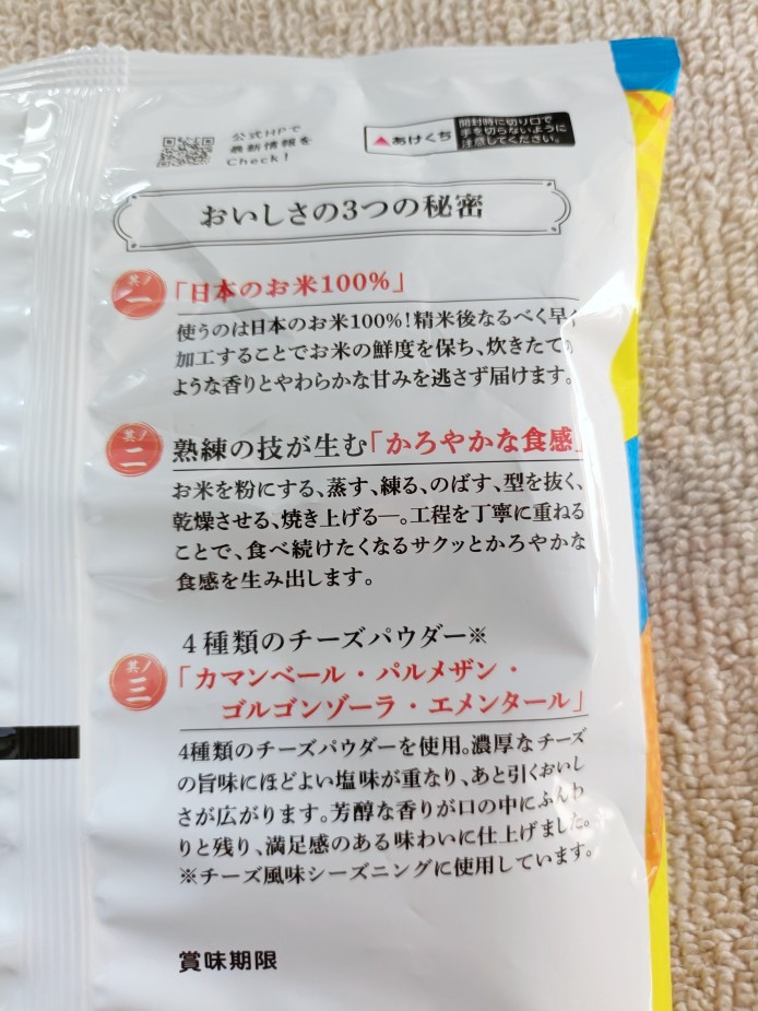 チートスのようなあんな感じのチーズ感。その名の通りチーズ感強めなのが美味しいですね。でも「チーズッッッッ!!!」ってくらいのどぎつさではないです。