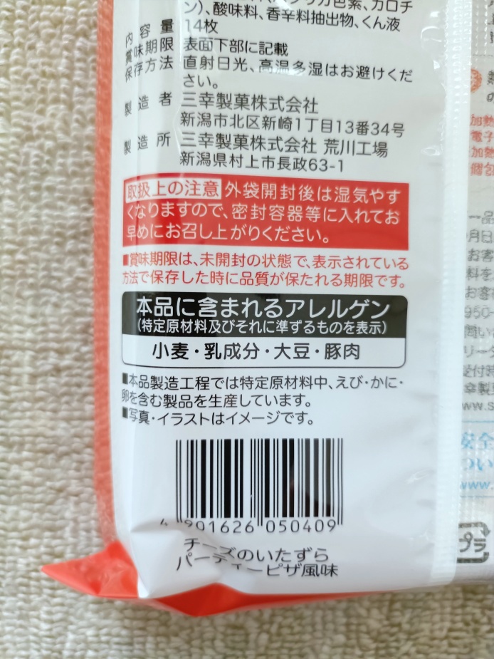 順番からいえば通常のチーズのいたずらの方をいきたいところですが、そっちは店頭になかったのでピザ味が先になりました。