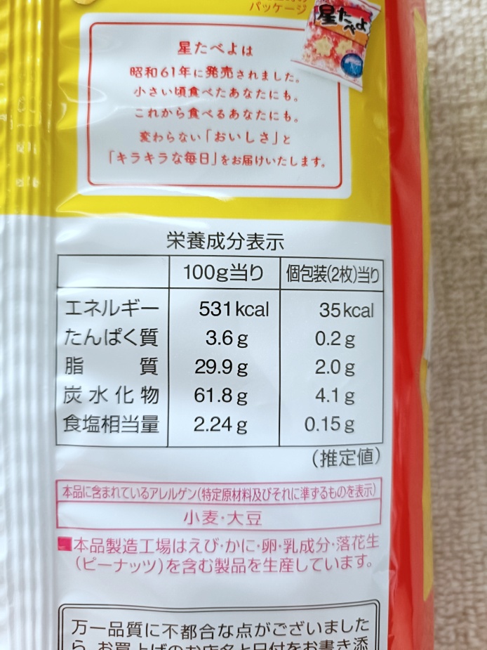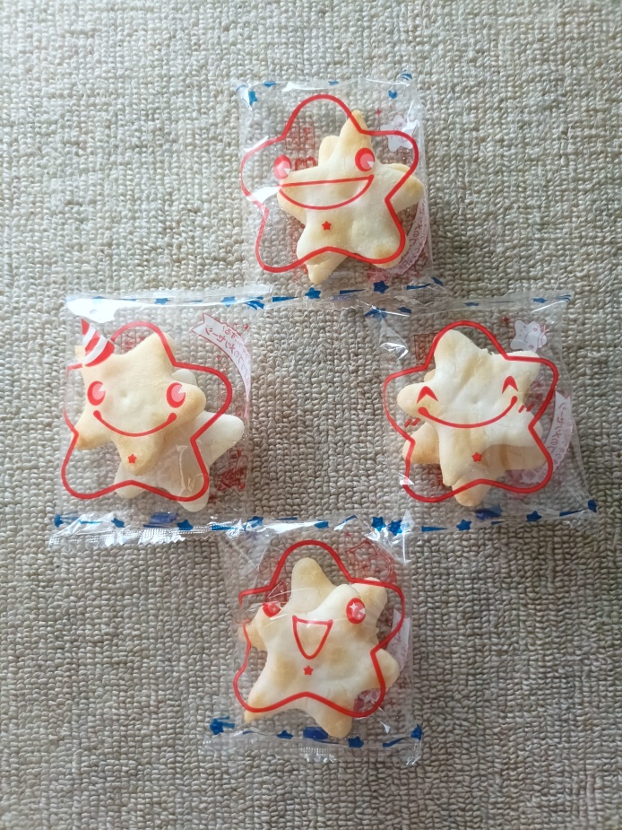 丸とか四角は作りやすいからその形ってこともあるでしょうけど、星型のせんべいってなかなか無いですよね。たぶん星たべよがワン&オンリーではないでしょうか?