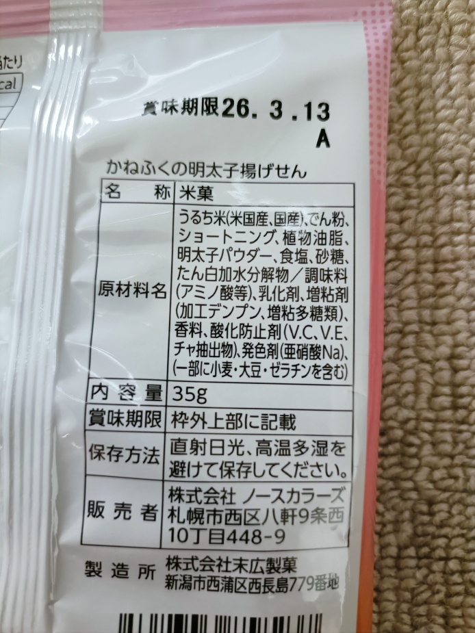 末広製菓 かねふくの明太子揚げせん(情報が出てこない!)
