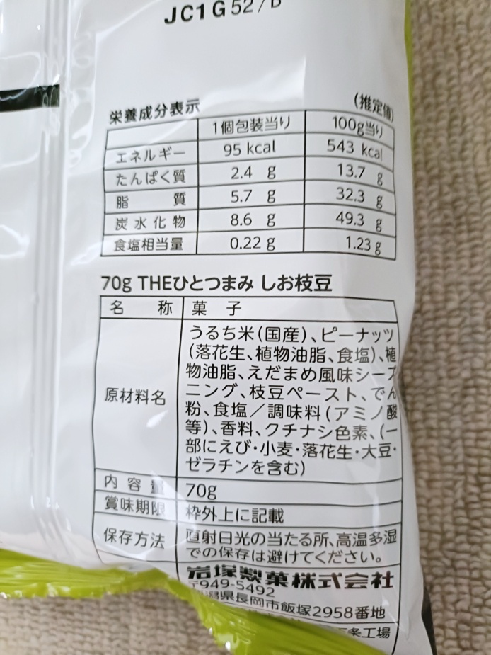 家飲みで枝豆を用意せずともこれでもいけるかも。ピーナッツも入っているからさらにおつまみ気分。隣にあったせんべいと迷ったけどこっちを買ったけど正解でした。むしろどっちも正解かもしれないけどね。